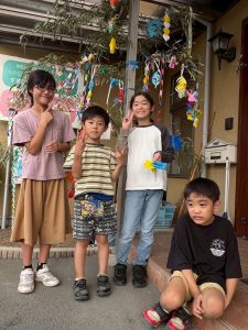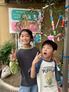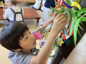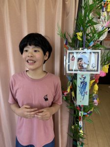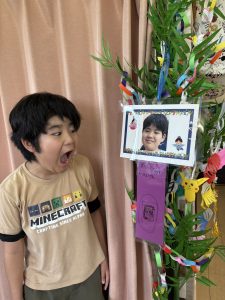 今年もたくさん折り紙を折って飾りました!去年よりも難しい折り紙に挑戦したり、好きなものを折るよりも七夕に合った折り紙を飾ろうという意識が出てきたことに成長を感じました。