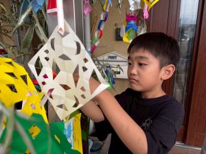 高学年の児童たちは高い所へ飾りたいと椅子を用意し、お互いに怪我をしないよう足を支えている姿に驚きました。子どもたち同士で考え、自らその先の危険を予測し、行動出来ていることに感動です★そして高学年という難しい時期にこうして協力し合い、一生懸命に取り組んでくれることがとても嬉しかったです♪